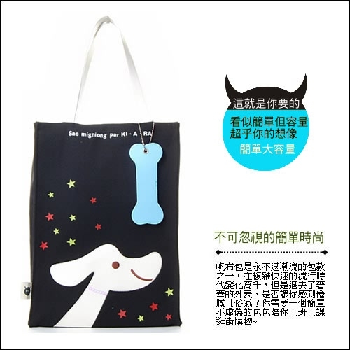 ITEM : F1-A1010Hot Japan Tiny Demon The happy dog + bone canvas bag Refer to the last photo for sizesMaterial: CanvasUnit Price (in SGD): S$35